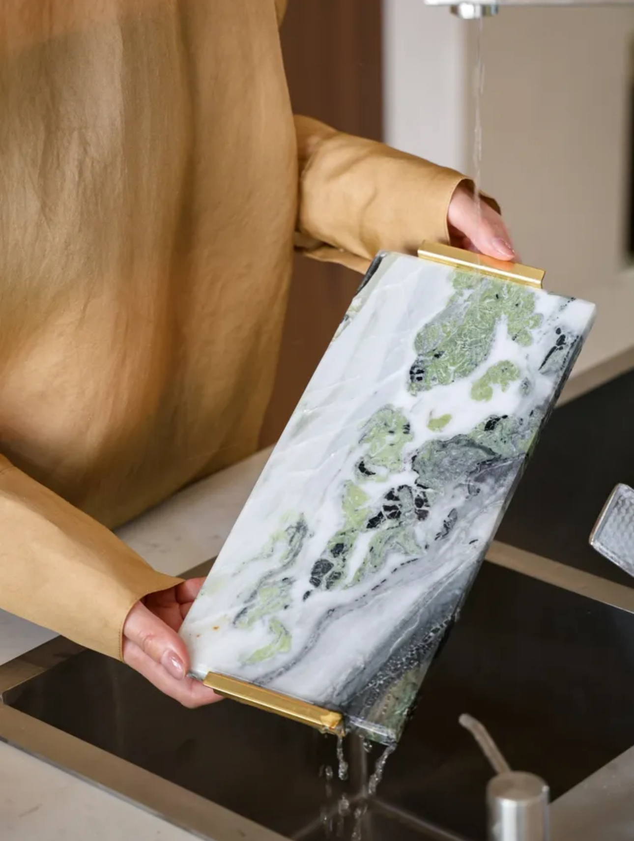 Crafted from high-quality marble, each tray boasts a unique natural pattern that ensures no two pieces are exactly alike. The sturdy structure of the Marble Square Tray exudes durability while maintaining an air of elegance. The minimalist, square shape lends itself beautifully to a wide array of interior styles, making it the ideal accent for contemporary, rustic, or classic decor themes. Its smooth surface not only enhances its aesthetic appeal but also makes it easy to clean and maintain, ensuring it looks pristine for years to come.