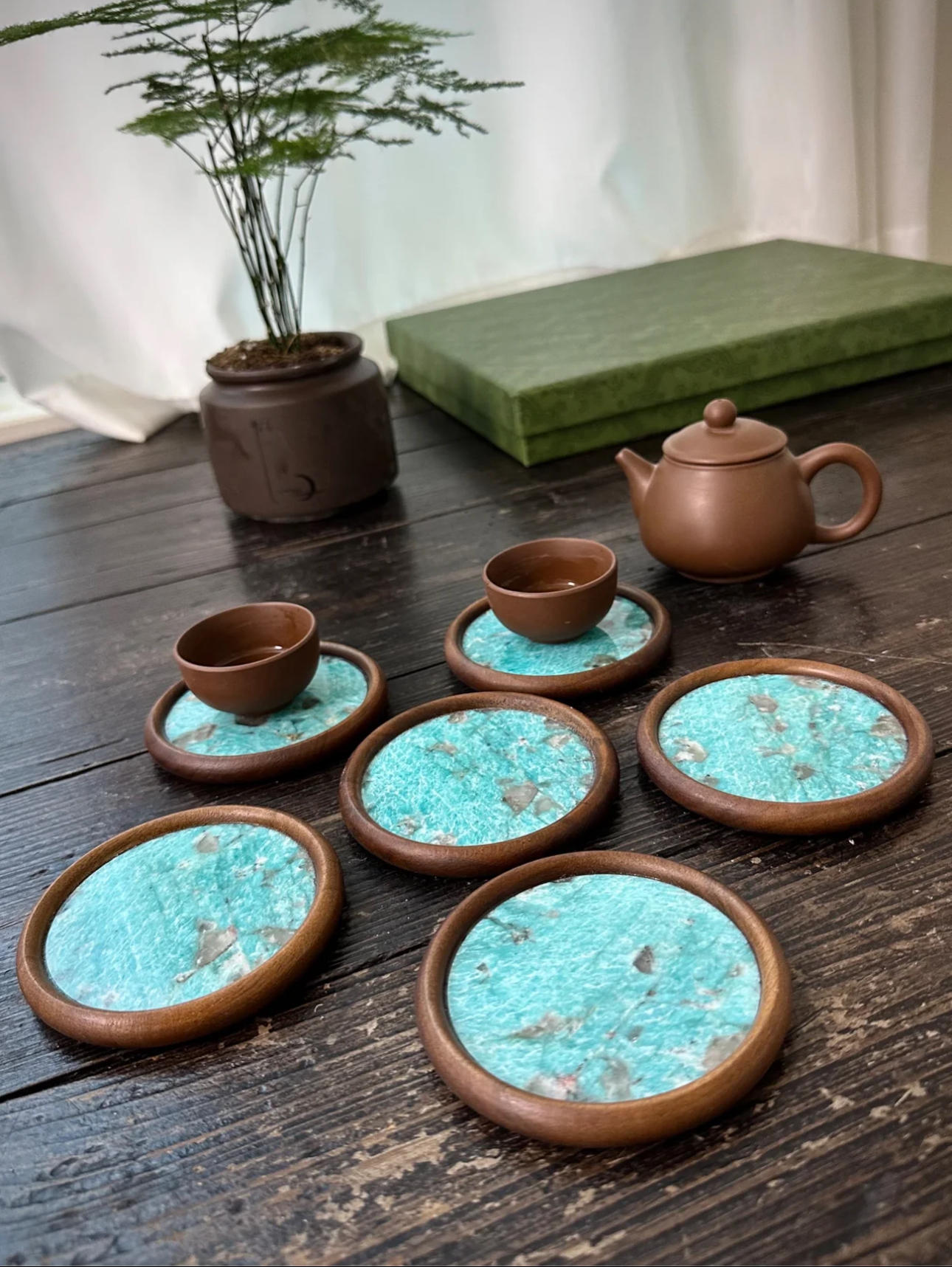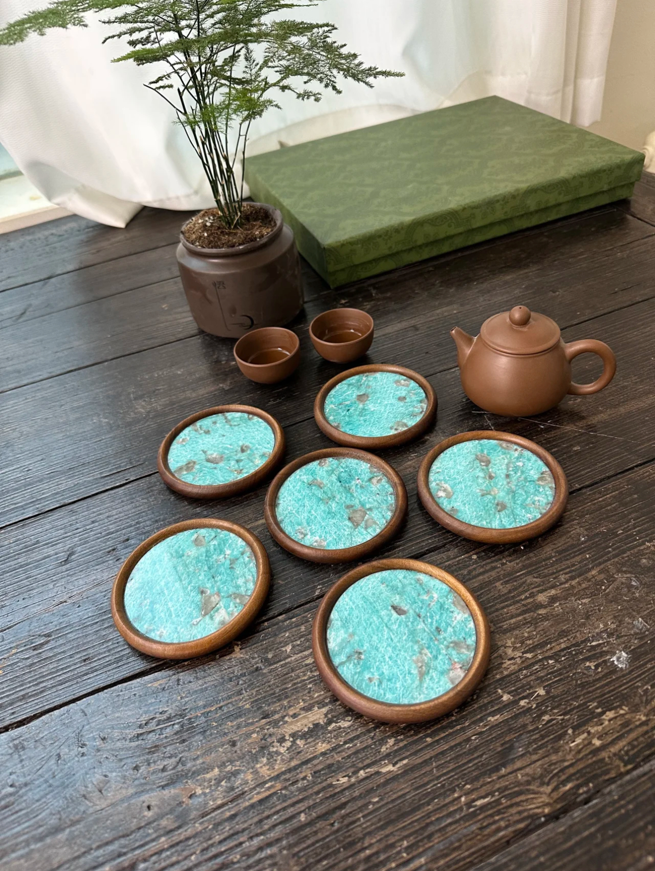 Material: “Amazon Green” marble + walnut